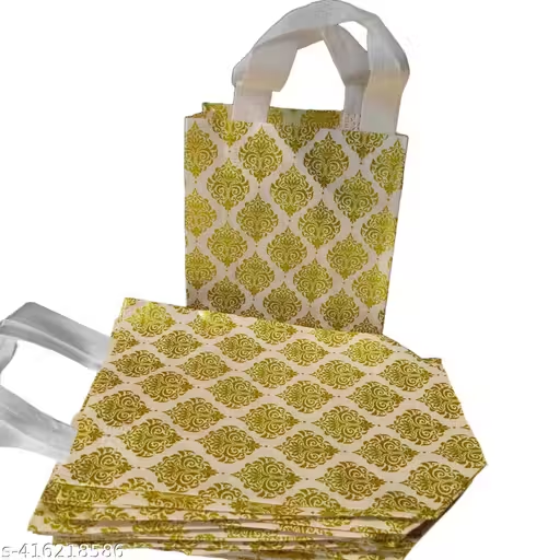 15Pcs Laminated Non-Woven Rectangular Printed Reusable Eco-Friendly Carry Bags with Handle For Party Return Gift, Wedding Gifts, Shagun, Saree, Mithai, Jewellery, Traditional Gift Bag (7×8.5×3.5 inch, 15pcs)